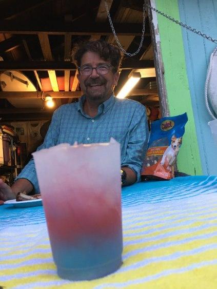 Everything you see on the shack has a local connection: the artwork, the signs paying homage to our nearby islands, and even the sticker collection covering the door. The mural of children splashing in the water was created by Jessica Liang, who studied art at SCAD. She also painted the tropical sunset scenes that face the backyard.