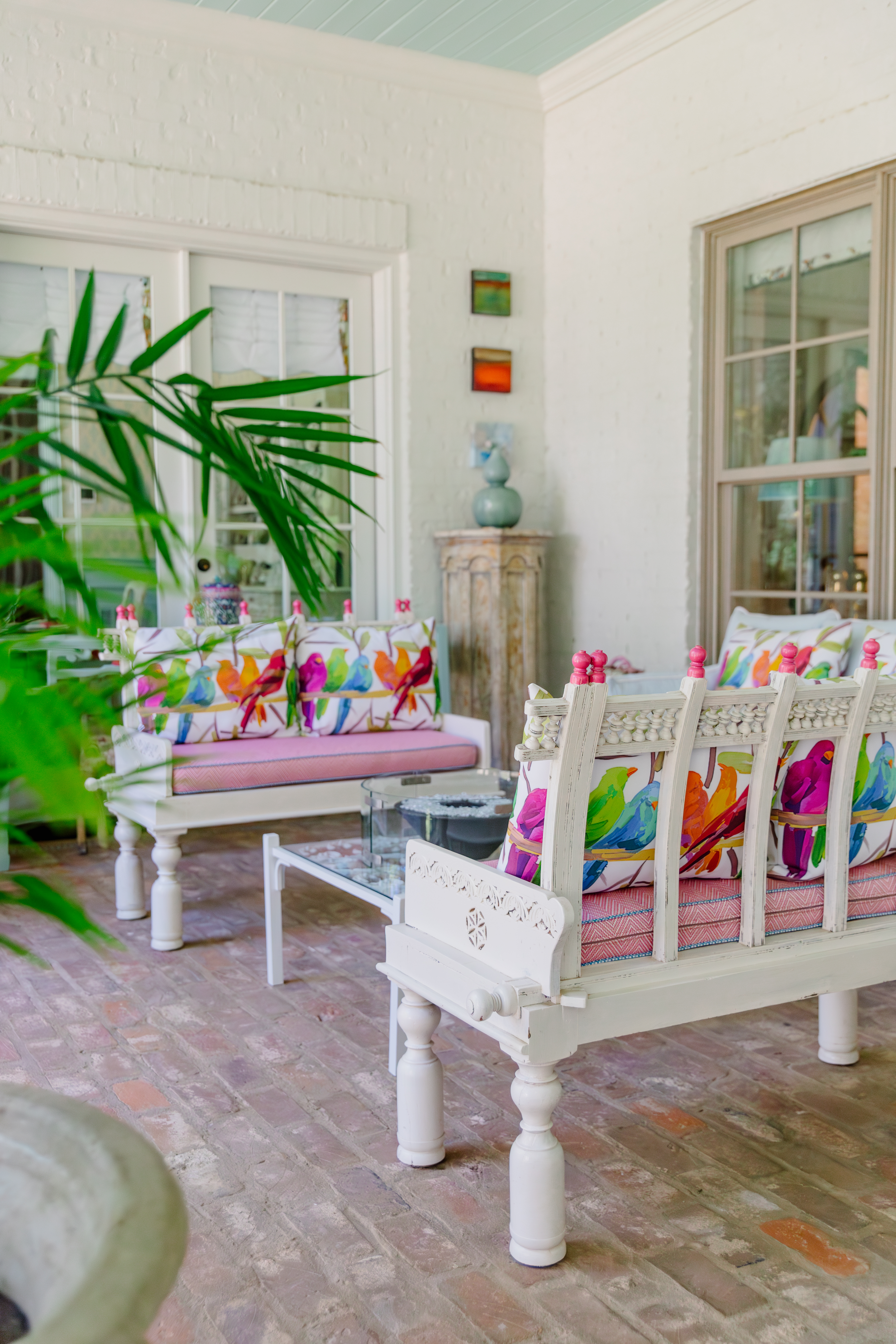 Martha had this to say about Erik, "we have been thrilled to work with Erik to create a colorful, comfortable outdoor oasis. Because the veranda is visible from multiple rooms of our home, Erik wanted to assure compatibility of design and color of the interior and exterior spaces. We have a vibrant color palette inside which carries over to the outside. Erik has been a master at understanding our eclectic aesthetic, utilizing and sometimes refurbishing our prized existing pieces, adding to the collection with carefully curated new items (often constructed for the space), and making the end result an intentional, cohesive, and unique design. We are so pleased! "