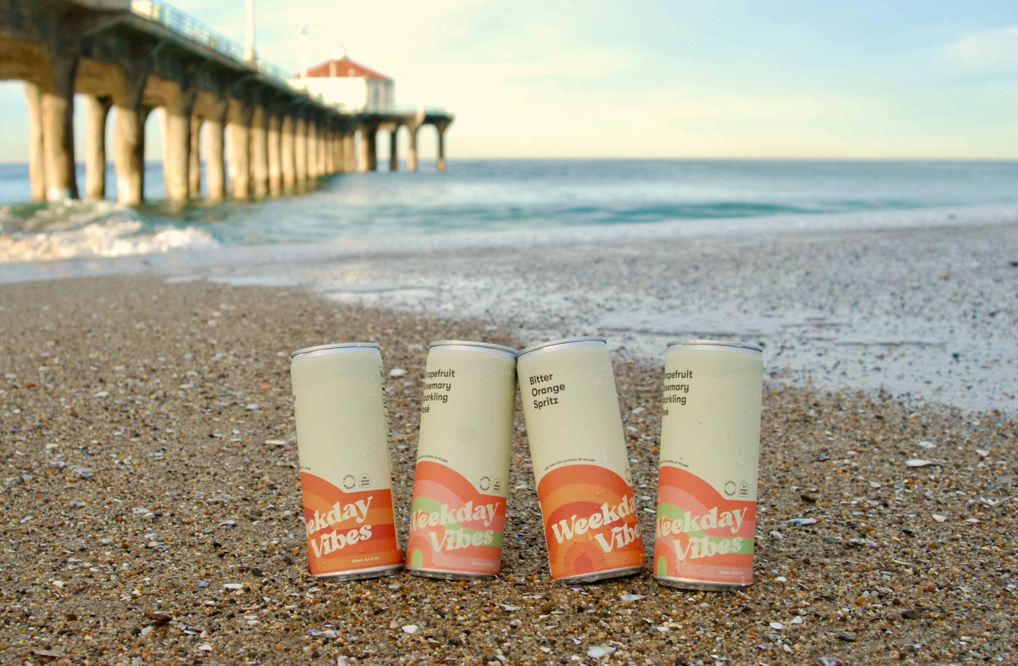 Marissa's love for her hometown of Manhattan Beach is evident in Weekday Vibes' brand identity, which draws inspiration from her beachy roots. In her photography, her cans are artfully displayed under the iconic Manhattan Beach Pier, and the overall aesthetic exudes a subtle retro ‘70s vibe with a contemporary touch. She skillfully did all the photography herself, capturing picture-perfect photos in the process.